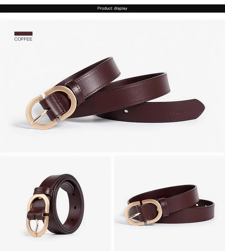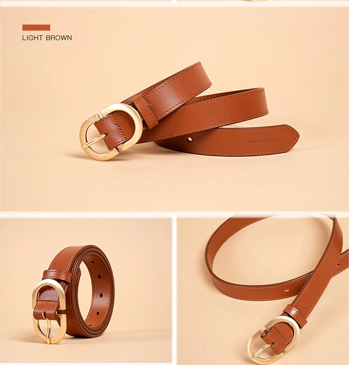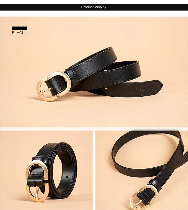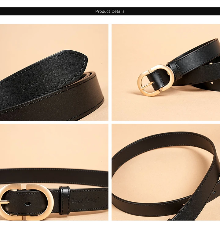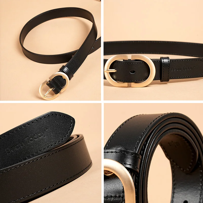 BEAUTODAY Belt Women Genuine Cow Leather Metal Oval Buckle Retro Simple Solid Ladies Jeans Dress Waistband Handmade 91012