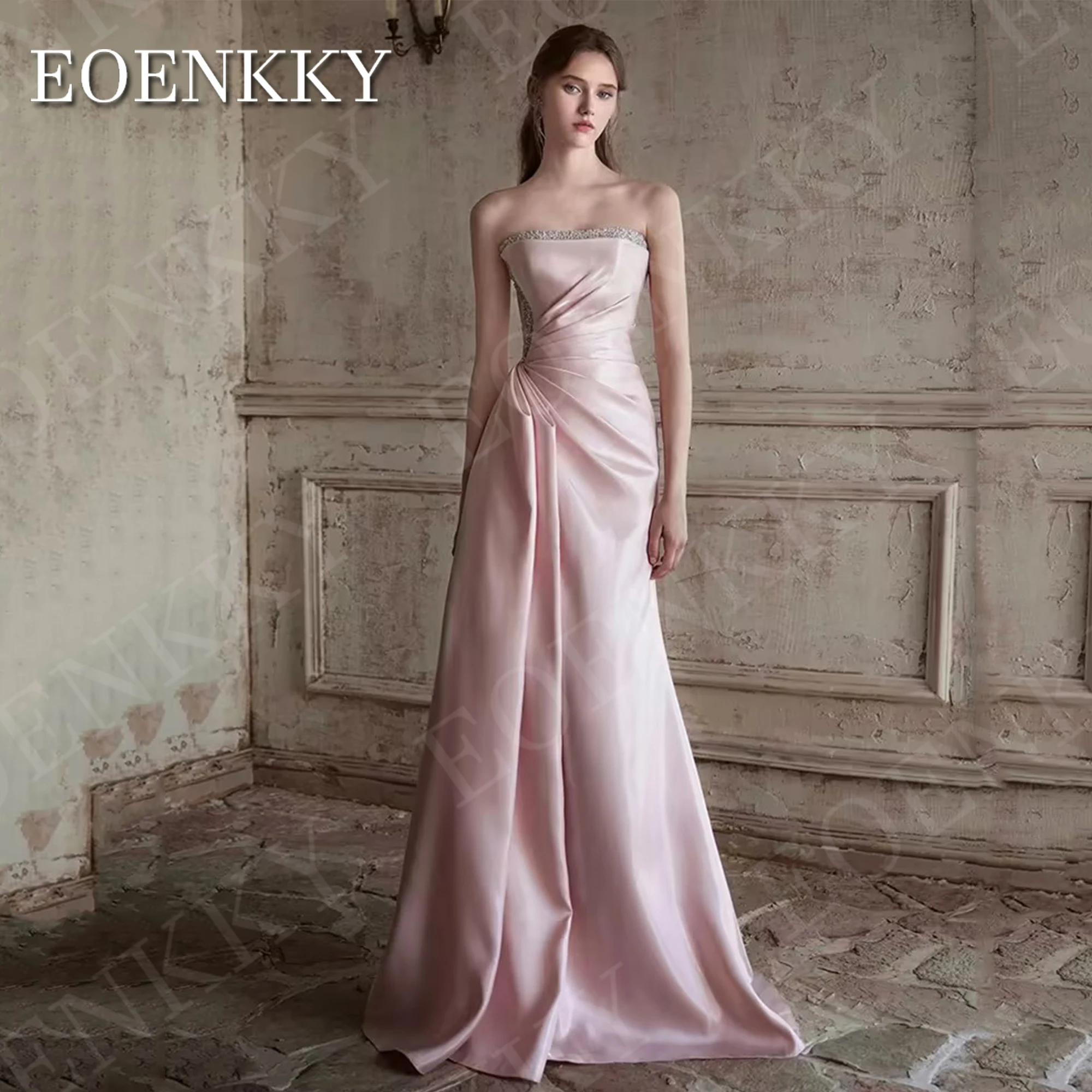 EOENKKY Mermaid Elegant Evening Dresses Prom Strapless Beaded Sleeveless Wedding Party Dress Pink Woman Customized فساتين سهرة